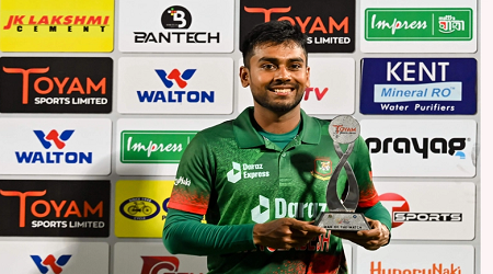 তাদের এই জুটি ৪ ওভার বাকি থাকতেই বাংলাদেশকে জয়ের বন্দরে নোঙর করায়। পরাজয়ের খাদের কিনারা থেকে টেনে তুলে ৩৯ বলে ৩৮ রান করে ম্যাচ শেষ করে ফেরার প্রতিদান মিরাজের এই পুরস্কার। তাকে যোগ্য সঙ্গ দিয়েছেন মুস্তাফিজ। ১১ বলে ১০ রানে ছিলেন মিরাজের সঙ্গে।
