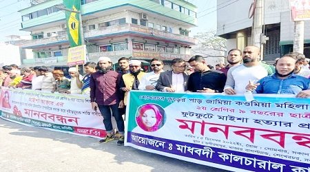 মোঃ সালাহউদ্দিন আহমেদ ,নরসিংদী জেলা প্রতিনিধি : নরসিংদীর মাধবদীতে ২য় শ্রেণির ক্বওমী মাদরাসার ছাত্রী ১০ বছরের মাইশাকে হত্যার বিচারের দাবিতে মানববন্ধন অনুষ্ঠিত হয়েছে। মাইশার পরিবার, এলাকাবাসী ও বিভিন্ন সামাজিক সংগঠন মানব বন্ধনে অংশ নেয়। মানববন্ধন শেষে উত্তেজিত জনতা ঢাকা সিলেট মহাসড়ক অবরোধ করে বিক্ষোভ মিছিল করলে যানবাহন চলাচল বন্ধ হয়ে যায়। পরে পুলিশ আন্দোলনরত জনতাকে সড়কের পার্শ্বে অবস্থান করে শান্তিপূর্ণ আন্দোলন করার আহ্বান জানালে আন্দোলনকারীরা মহাসড়ক থেকে সরে যায়।