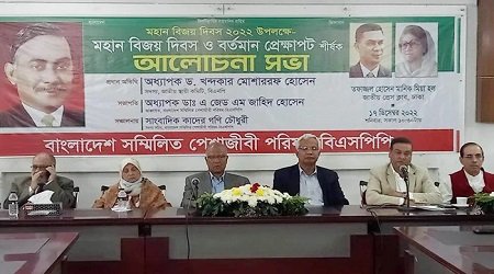 আজ শনিবার দুপুরে জাতীয় প্রেস ক্লাবে এক আলোচনা সভায় প্রধান অতিথির বক্তব্যে তিনি এসব কথা বলেন। মহান বিজয় দিবস উপলক্ষে “মহান বিজয় দিবস ও বর্তমান প্রেক্ষাপট” শীর্ষক এই আলোচনা সভার আয়োজন করে বাংলাদেশ সম্মিলিত পেশাজীবী পরিষদ (বিএসপিপি)।