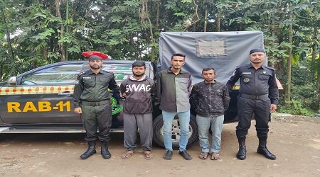 গ্রেফতারকৃতরা হলেন, উপজেলার ৫নং ছয়ানী ইউনিয়নের আমিরপুর এলাকার মো.শাহজাহানের ছেলে মো.রিশাত (২১), চৌমুহনী পৌরসভার উত্তর নাজিরপুর এলাকার এমাম হোসেন এমাম হোসেনের ছেলে মো.শাহাদাত হোসেন (২৮), চৌমুহনী পৌরসভার আলীপুর এলাকার মো.আবদুর রহিমের ছেলে মো.ইউসুফ হোসেন মিলন (২৩) ও ছয়ানী ইউনিয়নের ৬নম্বর ওয়ার্ডের কালিকাপুর গ্রামের নাটুয়ার বাড়ির জহিরুল ইসলামের ছেলে মো.মারুফ হোসেন (২০)। র্যাব-১১ এর সিপিসি-৩ নোয়াখালী কার্যালয়ের কোম্পানি কমান্ডার লেফটেন্যান্ট কমান্ডার মাহমুদুল হাসান বলেন, গোপন সংবাদের ভিত্তিতে শনিবার রাতে উপজেলার ১নং আমানউল্লাহপুর ইউনিয়নের আমিন বাজারের সামনে লক্ষ্মীপুর টু নোয়াখালী আঞ্চলিক সড়কে অভিযান চালিয়ে অস্ত্রধারী তিন সন্ত্রাসীকে গ্রেফতার করা হয়। এ সম তাদের থেকে একটি এলজি, তিনটি মোবাইল ও একটি মোটরসাইকেল জব্দ করা হয়। প্রাথমিক অনুসন্ধানে জানা যায়, গ্রেফতারকৃত আসামিরা এলাকায় মারামারি, দাঙ্গা-হাঙ্গামা সহ বিভিন্ন অপকর্মের সাথে জড়িত। নোয়াখালীর পুলিশ সুপার (এসপি) মো.শহীদুল ইসলাম বলেন, গোপন সংবাদের ভিত্তিতে গতকাল শনিবার দুপুর ২টার দিকে উপজেলার ছয়ানী ইউনিয়নের ৫নম্বর ওয়ার্ডের পশ্চিম খালিশপুর গ্রামের কাজী ছেলামত উল্যার বাগানে অভিযান চালিয়ে দেশীয় পাইপগান সহ এক যুবককে গ্রেফতার করে পুলিশ। এ ঘটনায় অস্ত্র আইনে মামলা হয়েছে। ওই মামলায় আসামিকে নোয়াখালী চীফ জুডিশিয়াল ম্যাজিস্ট্রেট আদালতে সোপর্দ করা হবে।