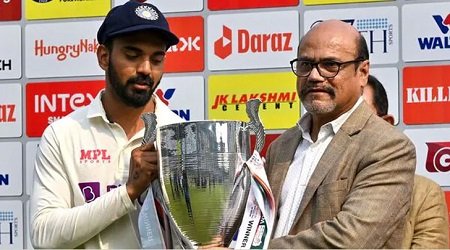 ঢাকার মিরপুরের দ্বিতীয় টেস্টে বাংলাদেশের বিরুদ্ধে জয়ের জন্য ভারতের প্রয়োজন ছিল মাত্র ১৪৫ রান। এই ছোট্ট রান তাড়া করতে গিয়ে শোচনীয় অবস্থা হয়েছিল কপিল দেবের উত্তরসূরীদের। মাত্র ৭৪ রানে সাত উইকেট হারিয়ে পরাজয়ের প্রহর গুনছিল সফরকারীরা। কিন্তু অষ্টম উইকেটে রবিচন্দ্রন অশ্বিন এবং শ্রেয়স আইয়ারের অপরাজিত ৭১ রানের জুটি গড়ে বাংলাদেশের জয়কে ছিনিয়ে নেন। তিন উইকেট জয় পেয়ে ভারত স্বস্তির নিশ্বাস ফেলে রাহুলরা।