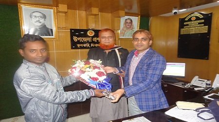 মোঃ আফজাল হোসেন, দিনাজপুর প্রতিনিধি : সদ্য যোগদানকৃত ফুলবাড়ী উপজেলা নির্বাহী অফিসার মুহাম্মদ ওয়াসিকুল ইসলাম এর কে বীর মুক্তিযোদ্ধা জনাব আলী ও বীর মুক্তিযোদ্ধ মৃত ইয়াকুব আলীর পুত্র মোঃ ইউসুফ আলীর ফুলেল শুভেচ্ছা প্রদান করেন।