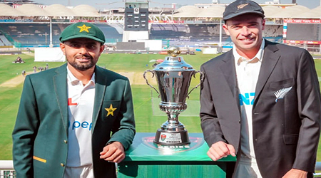 স্পোর্টস ডেস্ক : ২০ বছর পর পাকিস্তানের মাটিতে টেস্ট খেলতে নামলো নিউজিল্যান্ড ক্রিকেট দল। সোমবার (২৬ ডিসেম্বর) করাচিতে সিরিজের প্রথম টেস্টে মুখোমুখি দুই দল। টস জিতে ব্যাটিং বেছে নিয়েছে পাকিস্তান। সদ্য পাকিস্তানের মাটিতে টেস্ট সিরিজ জয় করেছে ইংল্যান্ড ক্রিকেট দল। দীর্ঘদিন পরে সফরে গেলেও ইংলিশদের কাছ থেকে অনুপ্রাণিত হতে চায় নিউজিল্যান্ড। অপরদিকে, ইংল্যান্ড সিরিজের ব্যর্থতা ভুলে জয়ের ধারায় ফিরতে মরিয়া পাকিস্তান।