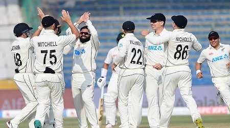 টস জিতে প্রথমে ব্যাট করতে নামে পাকিস্তান। চতুর্থ ওভারে প্রথমবার আক্রমণে এসেই শিকার ধরেন নিউজিল্যান্ডের স্পিনার আজাজ প্যাটেল। ওই ওভারের তৃতীয় বলে স্টাম্প আউট হন পাকিস্তানের ওপেনার আব্দুল্লাহ শফিক (৭)। এরপর ইনিংসে ষষ্ঠ ওভারে পাকিস্তানের দ্বিতীয় উইকেটের পতন ঘটান নিউজিল্যান্ডের আরেক স্পিনার মাইকেল ব্রেসওয়েল।