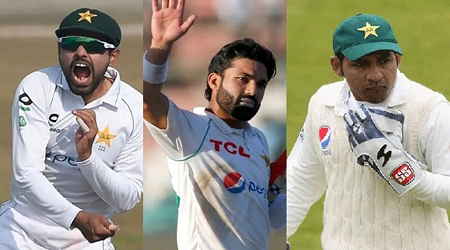 রিভিউ নেওয়ার সময় এগিয়ে এলেন দীর্ঘদিন পর দলে আসা সরফরাজ আহমেদ। অর্থাৎ বাবরের অনুপস্থিতিতে পাকিস্তানের নেতা তিনি। যদিও রিজওয়ানকে ফিল্ডারের জায়গা পরিবর্তন করতে দেখা গেছে। বাবরের পাশাপাশি শান মাসুদ ও আগা সালমানের জ্বর। তাই তারা মাঠে নামেননি। তবে মাঠে রিজওয়ানের কর্মকাণ্ডে প্রশ্ন উঠেছে, পাকিস্তানের অধিনায়ক কি তাহলে তিনজন?