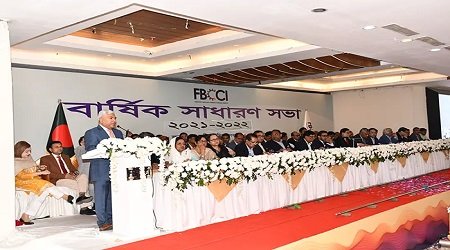 বুধবার রাজধানীর রাওয়া কনভেনশন হলে এফবিসিসিআই’র বার্ষিক সাধারণ সভায় এই আহ্বান জানান মো. জসিম উদ্দিন। করোনা সংক্রমণজনিত কারণে ২০২০-২১ সেশনের বার্ষিক সাধারণ সভা নির্ধারিত সময়ে আয়োজন করা সম্ভব হয়নি। ফলে বুধবার একই ভেন্যুতে পৃথকভাবে ২০২০-২১ এবং ২০২১-২২ সালের বার্ষিক সাধারণ সভা অনুষ্ঠিত হয়।