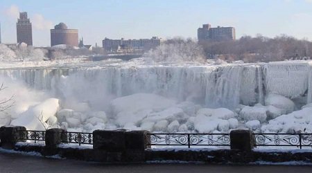 তাপমাত্রা হিমাঙ্কের অনেক নিচে নেমে যাওয়ায় নায়াগ্রা নদীর পানি জমতে শুরু করেছে। পানির ওপর বরফের আস্তরণ পড়েছে। আর সেই বরফ নিয়েই নিচে আছড়ে পড়ছে নায়াগ্রা জলপ্রপাত। নায়াগ্রা জলপ্রপাত কখনওই পুরোপুরি জমে যাওয়া সম্ভব নয় বলে জানিয়েছেন নায়াগ্রা পার্ক কর্তৃপক্ষ। কারণ এর বিশাল জলরাশি।