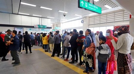 ইতিহাসের সাক্ষী হতে প্রথম দিন মেট্রোরেলে চড়তে উত্তরা ও আগারগাঁও স্টেশনে জড়ো হওয়া নগরবাসীর যারা ট্রেনে চড়তে পারেননি, তারা মন খারাপ করে বাসায় ফিরেছেন। আর তাই দ্বিতীয় দিনে ফজর নামাজ পড়েই মেট্রোরেলে চড়তে লাইনে দাঁড়িয়েছেন তারা। শুক্রবার মেট্রোরেলের আগারগাঁও স্টেশন ঘুরে দেখা গেছে, শতাধিক মানুষ লাইনে দাঁড়িয়ে আছেন। লাইনের শেষ প্রান্ত গিয়ে ঠেকেছে আগারগাঁওয়ের পাসপোর্ট অফিস মোড়ে।