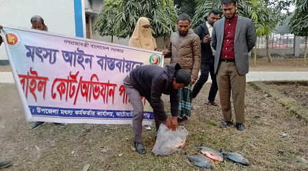 এতে ১৫ কেজি পিরানহা মাছ জব্দ সহ উপজেলার ছোটদাপ গ্রামের বশির উদ্দীনের পুত্র মৎস্য ব্যবসায়ী মোঃ কাজল ইসলাম(২৪)কে ২০০০/- অর্থদন্ড করা হয়। জব্দকৃত মাছ উপজেলা পরিষদ চত্ত্বরে প্রকাশ্য জনসম্মুখে মাটিতে গর্ত খনন করে পুতে দেওয়া হয়। ভ্রাম্যমান আদালতের এক্সিকিউটিভ ম্যাজিস্ট্রেট ও উপজেলা নির্বাহী অফিসার মোঃ মুসফিকুল আলম হালিম এ তথ্যের সত্যতা নিশ্চিত করেন।