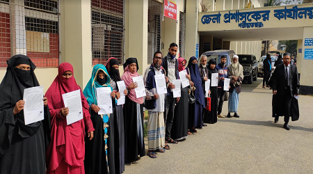 মামলার বাদী সাহিদা বেগম মানববন্ধন স্থলে কান্নায় ভেঙ্গে পড়েন। সেখানে তিনি বলেন, মামলার তদন্ত কর্মকর্তা আমার কাছ থেকে টিপসই নেয়। তারা নাকি আমার মামলা তদন্ত করবে না। অপর দিকে মামলার আসামী সুমন খন্দকার মামলা তুলে নিতে চাপ সৃষ্টি করতেছে। আমি অসহায় হয়ে পড়েছি। গরীব বলে কি ন্যায় বিচার পাওয়ার অধিকার আমাদের নাই। আজ মানববন্ধন শেষে ন্যায় বিচার পাওয়ার জন্য জেলা প্রশাসক বরাবর আবেদন করেছি।