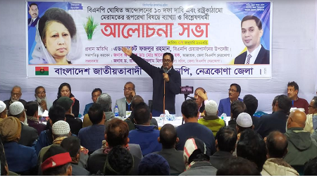 শান্তা ইসলাম নেত্রকোনা প্রতিনিধি : বিএনপির চেয়ারপার্সনের উপদেষ্টা এডভোকেট ফজলুর রহমান বলেছেন, বর্তমান আওয়ামী লীগ সরকার ক্ষমতায় গিয়ে বিরোধী দলসহ ভিন্ন মতাবলম্বীদেরকে রাজনৈতিক ভাবে নির্মূলের চেষ্টা চালিয়ে যাচ্ছে। বিরোধী দলকে দমন করতে দেশব্যাপী নেতাকর্মীদের উপর অত্যাচার নির্যাতন, হামলা, মামলা, গুম, খুন চালিয়ে যাচ্ছে। দেশে মেঘা প্রকল্পের নামে মেঘা লুটপাট চলছে। দেশ থেকে হাজার হাজার কোটি টাকা পাচার করা হচ্ছে। দ্রব্যমূল্যের উর্ধ্বগতিতে সাধারণ মানুষের নাভিশ্বাস উঠেছে। সরকার দেশ পরিচালনায় ব্যর্থ।