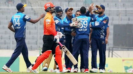 ঢাকার হয়ে ২৮ রানে ৪ উইকেট নেন পেসার আল আমিন। দুটি করে উইকেট নেন নাসির হোসেন ও আরাফাত সানি।টার্গেট তাড়া করতে নেমে ৫ বল হাতে রেখেই জয়ের বন্দরে পৌঁছে যায় ঢাকা। দলের জয়ে ৩৬ বলে ৩৬ রান করে ম্যাচ সেরার পুরস্কার জিতেন অধিনায়ক নাসির। এছাড়া ২৮ বলে ২২ রান করেন দিলশান মুনাওয়েরা।