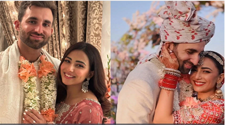 বিয়েতে হামজা আমিন পরেছিলেন সাদা শেরওয়ানি। শুধু লাল লেহেঙ্গা পরে বিয়ে নয়, অনুষ্ঠানে নবদম্পতিকে গানের সঙ্গে নাচতেও দেখা গেছে। তারকা দম্পতির বিয়ের ভিডিও দেখে চটেছেন পাকিস্তানি নেটিজেনরা।