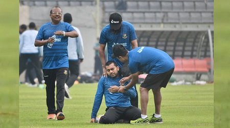 বিসিবির প্রধান চিকিৎসক দেবাশীষ চৌধুরী বিষয়টি জানিয়ে বলেছেন, ‘ওর চোখে ফুটবল লেগেছে। আমরা ওর সিটি স্ক্যান করেছি। রিপোর্ট ভালো এসেছে। এখন দেখি চোখের চিকিৎসক কী বলেন।’এর আগে গতকাল নেটে অনুশীলন করতে গিয়ে আঙুলে চোট পান প্রথমবার ওয়ানডে স্কোয়াডে ডাক পাওয়া জাকির হাসান। পরে জানা যায় এই চোট সারতে সময় লাগবে দুই সপ্তাহের বেশি। যে কারণে স্কোয়াড থেকেই ছিটকে গেছেন এই বাঁহাতি ব্যাটার। তার বদলি হিসেবে দলে ডাক পেয়েছেন রনি তালুকদার।