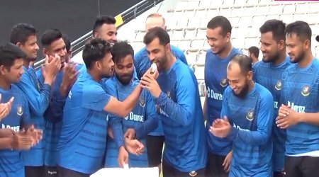 শনিবার (১৮ মার্চ) দুপুর ২টায় সিলেটে বাংলাদেশ-আয়ারল্যান্ডের প্রথম ওয়ানডে ম্যাচ মাঠে গড়াবে। সেজন্য গত ১৬ মার্চ সিলেট পৌঁছায় বাংলাদেশ ক্রিকেট দল। আজ সকালে অনুশীলন শেষে বঙ্গবন্ধুর জন্মদিন উপলক্ষে কেক কাটে ক্রিকেটাররা।