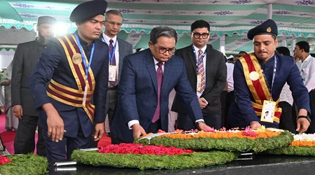ডেস্ক নিউজ : জাতির জনক বঙ্গবন্ধু শেখ মুজিবুর রহমানের ১০৩তম জন্মবার্ষিকীতে প্রধান বিচারপতি হাসান ফয়েজ সিদ্দিকী বঙ্গবন্ধুর প্রতিকৃতিতে শ্রদ্ধা নিবেদন করেছেন। আজ শুক্রবার ৭টা ১০ মিনিটে রাজধানীর ধানমন্ডি ৩২ নম্বরে বঙ্গবন্ধুর প্রতিকৃতিতে পুষ্পস্তবক অর্পণ করে শ্রদ্ধা নিবেদন করেন তিনি।