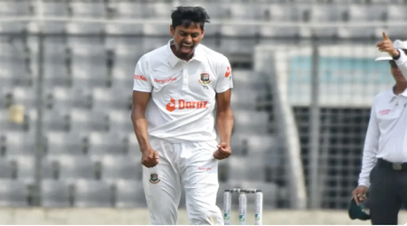 স্পোর্টস ডেস্ক : সাকিব আল হাসানের পর তাইজুল ইসলামের জোড়া আঘাত। এই দুই বাঁ-হাতি স্পিনারের তোপের মুখে ৮ রানে ৩ উইকেট হারিয়েছে আয়ারল্যান্ড। ১৫৫ রানে পিছিয়ে থেকে দ্বিতীয় ইনিংসে ব্যাটিংয়ে নেমেই বিপদে সফরকারী আইরিশরা। মঙ্গলবার মিরপুর শেরেবাংলা জাতীয় ক্রিকেট স্টেডিয়ামে একমাত্র টেস্টে টস জিতে ব্যাটিংয়ে নেমে তাইজুল ইসলামের ঘূর্ণিবলে বিভ্রান্ত হয়ে ২১৪ রানে অলআউট হয় আয়ারল্যান্ড ক্রিকেট দল।