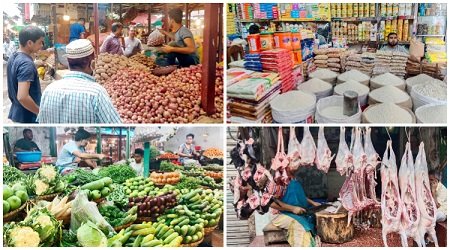 পেঁয়াজের কেজি বিক্রি হচ্ছে ৩৫ থেকে ৪০ টাকা। বড় রসুনের কেজি ১২০ টাকা। ছোট রসুনের (দেশি) কেজি বিক্রি হচ্ছে ৮০-১০০ টাকা। আর আদার কেজি ১৪০ থেকে ১৬০ টাকায়। বেড়েছে আলুর দাম, প্রতি কেজি বিক্রি হচ্ছে ৩০ টাকা। যা এক সপ্তাহ আগেও ছিল ২০ থেকে ২৫ টাকা। খোলা চিনি প্রতি কেজি ১২০ টাকা। খোলা আটার কেজি ৬০ টাকা। প্যাকেট আটা প্রতি কেজি ৬৫ টাকা এবং ২ কেজির প্যাকেট বিক্রি হচ্ছে ১৩০ টাকায়। দেশি মসুরের ডালের কেজি বিক্রি হচ্ছে ১৪০ টাকা। ইন্ডিয়ান মসুরের ডালের কেজি ১২০-১২৫ টাকা। সয়াবিন তেলের লিটার বিক্রি হচ্ছে ১৮৭ টাকা। লবণের কেজি বিক্রি হচ্ছে ৩৮-৪০ টাকা।
