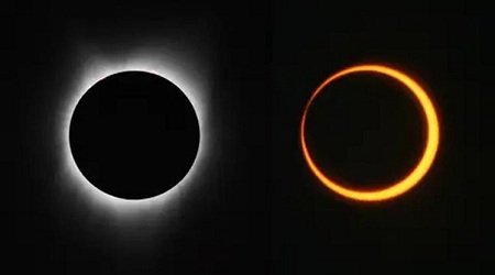 সূর্যগ্রহণের এ সময়টাতে চাঁদ সূর্যের কেন্দ্র বরাবর অবস্থান করে ও সূর্যকে ঢেকে রাখে। ঢেকে রাখা অংশের বাইরের প্রান্তজুড়ে চাঁদের চারপাশে আগুনের বলয় দৃশ্যমান হয়। চাঁদের কক্ষপথ সূর্যের চারপাশে পৃথিবীর কক্ষপথের তুলনায় প্রায় পাঁচ ডিগ্রি ঝুঁকে থাকে।
