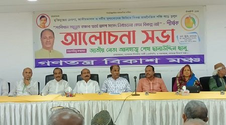 শনিবার (১০ জুন) প্রেসক্লাবে আয়োজিত এক আলোচনা সভায় সভাপতির বক্তব্যে এসব কথা বলেন ১৭ দল নিয়ে গঠিত রাজনৈতিক জোট গণতন্ত্র বিকাশ মঞ্চের সমন্বয়ক শেখ ছালাউদ্দিন ছালু। তিনি বলেন, এখন ভোট কেন্দ্রে ১৫ থেকে ২০% লোক যাচ্ছে ভোট দিতে। ৮০% লোক ভোট দিতে যাচ্ছে না। আমি এই ভোটারদের অনুরোধ করব, ভোট আপনাদের আমানত। আপনারা যদি ভোট কেন্দ্রে না যান তাহলে আমানতের খেয়ানত করলেন।