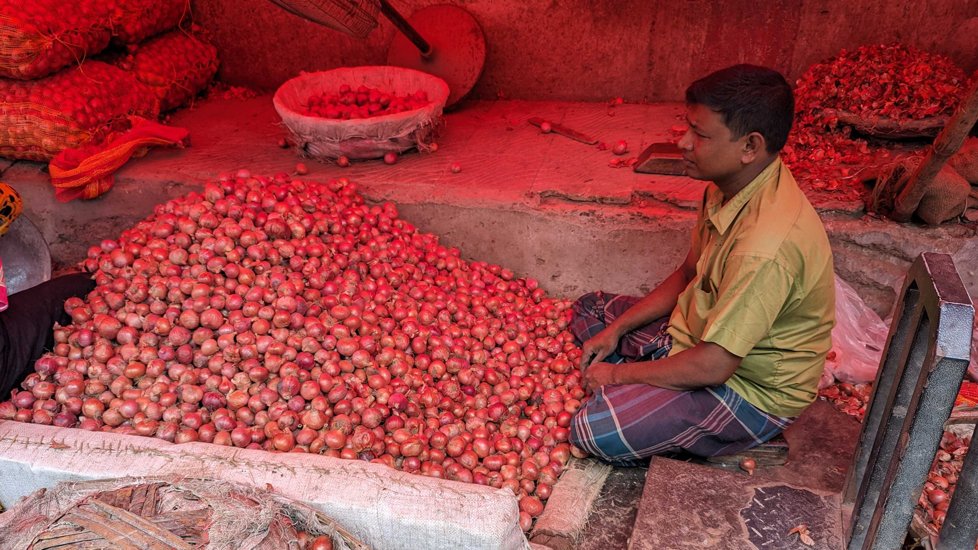 পুরান ঢাকার শ্যামবাজারে পাইকারিতে প্রতিকেজি দেশি পেঁয়াজ বিক্রি হচ্ছে ৭০ টাকায়। ছবি: বিশ্বজিৎ দাস বিজয়