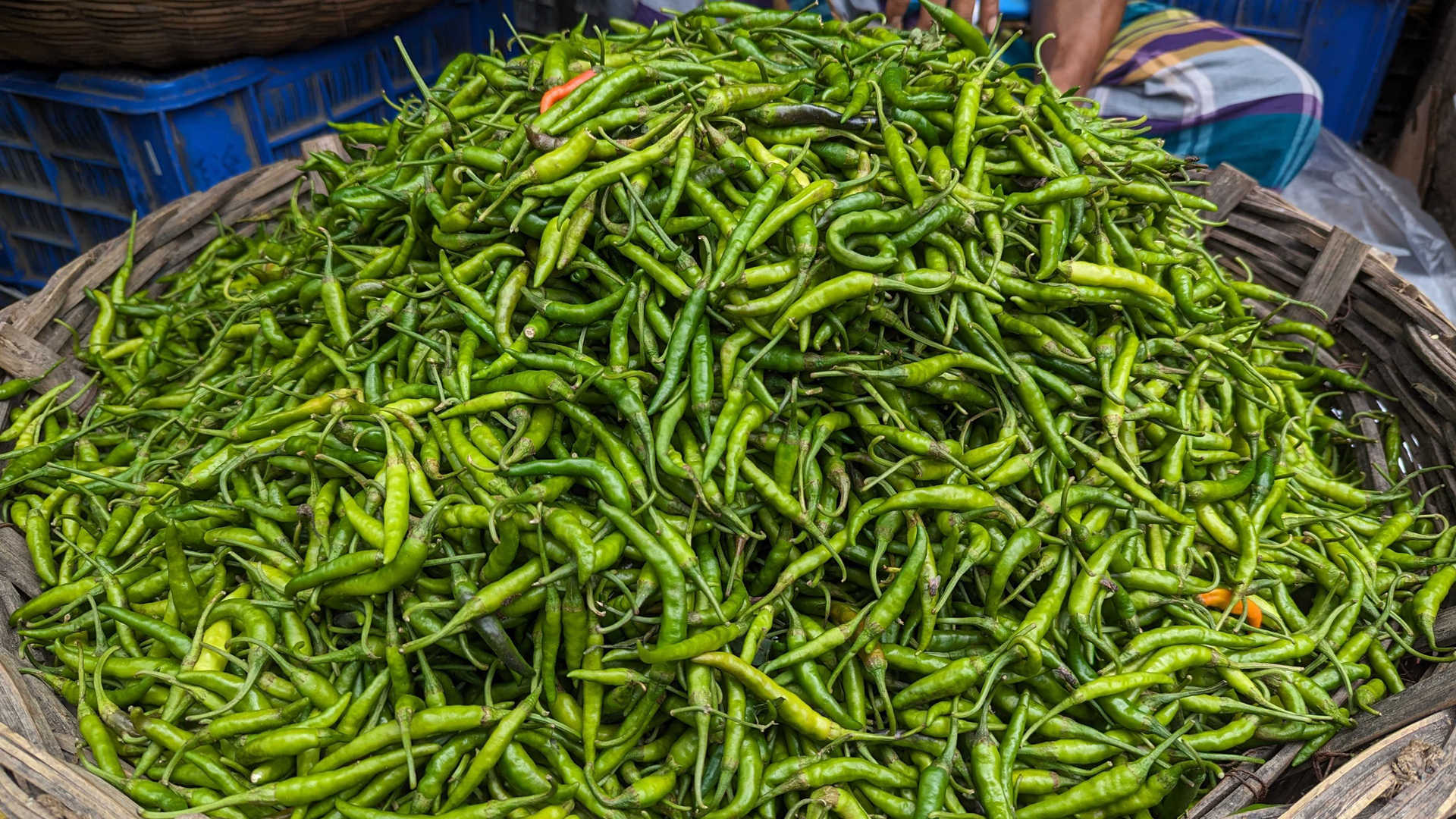 কেজিতে ৩০ থেকে ১০০ টাকা কমেছে কাঁচা মরিচের দাম। ছবি: বিশ্বজিৎ দাস বিজয়