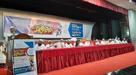 ডেস্ক নিউজ : শনিবার (২২ জুলাই) রাজধানীর গুলিস্তানে জাতীয় ওলামা মাশায়েখ সম্মেলন থেকে এ হঁশিয়ারি দেয়া হয়েছে। এতে অংশ নেন বিভিন্ন জেলা ও উপজেলা থেকে আগত নেতাকর্মীরা। শায়খুল হাদীস পরিষদ আয়োজিত সম্মেলন থেকে আগামী ২০ আগস্ট সারাদেশে জেলা প্রশাসক অফিসে স্মারকলিপি প্রদান কর্মসূচির ঘোষণা দেন সংগঠনটির প্রধান পৃষ্ঠপোষক মাওলানা মাহফুজুল হক।