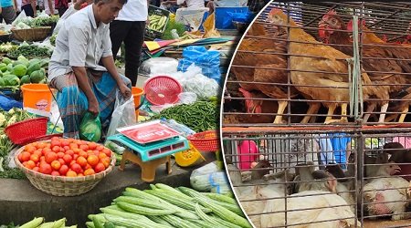 বাজারে ছোট বাঁধাকপি ৫০ থেকে ৬০ টাকা, ফুলকপি ছোট আকারের ৪০ থেকে ৫০ টাকা, প্রতি কেজি মুলা ৪০ টাকা, শিম ২০০ থেকে ২২০ টাকা, পাকা টমেটো ১২০ থেকে ১৬০ টাকা কেজিতে বিক্রি হচ্ছে। সপ্তাহের ব্যবধানে ব্রয়লার মুরগির দাম কেজিতে ১০ টাকা বেড়ে ১৮০ টাকা দরে বিক্রি হচ্ছে। গত সপ্তাহে এসব বাজারে ব্রয়লার মুরগি বিক্রি হয়েছে কেজি প্রতি ১৭০ টাকা দরে।