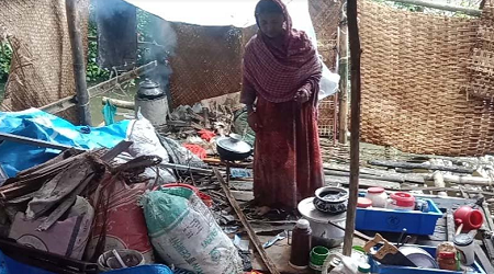 গাজী মো.গিয়াস উদ্দিন বশির,ঝালকাঠি : আমার স্বামী মইরা গেছে ১৫ বছর হইছে। আমার একটা নাতি আছে ও আমার সাথে থাকে। এই নাতিরে লইয়া অনেক কষ্টে দিনযাপন করছি।একটা বাসা ভাড়া নিছিলাম হেয়াও পানিতে তলাইয়া যায় তাছাড়া আয় রোজগারের কেউ না থাহায় বাড়া দিতে পারছি না।এর আগে আমার ভাই বাসা ভাড়ার টাকা দিতো তিনি এখন দেওয়া বন্ধ করে দিয়েছে এহন কই যামু, যাওয়ার কোন পথ দেহি না। পরে চিন্তা করলাম সবার কাছে চাইয়া বাঁশ খুটি আইনা এই পুহোইরের (পুকুর)মধ্যে মাচা বানাইয়া থাহি। এই জায়গাটা দিবে না তিনবছর ধরে মামাতো ভাইগো কাছে ঘুরতে আছি। মোর মায়ে জায়গা পাইবো মামাবাড়ি। কিন্তু এরপরও আমারে ঘর বানাইতে দেয়নায় বাড়িতে।
