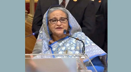 বাংলাদেশকে আর্থ-সামাজিকভাবে উন্নত করতে তার সরকারের পদক্ষেপের সংক্ষিপ্ত বর্ণনা দিয়ে তিনি বলেন, তারা বাংলাদেশকে একটি উন্নয়নশীল ও ডিজিটাল দেশে রূপান্তরিত করেছে এবং এখন ২০৪১ সালের মধ্যে এটিকে একটি উন্নত, সমৃদ্ধ ও স্মার্ট বাংলাদেশ হিসেবে গড়ে তুলতে কাজ করছেন। সূত্র: বাসস