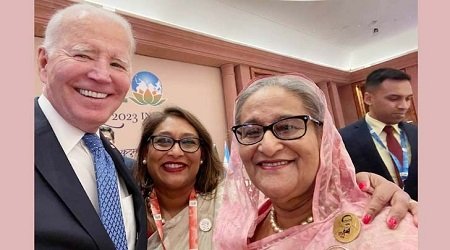 গত মাসে নয়াদিল্লিতে জি-২০ সম্মেলনের ফাঁকে বাইডেন, শেখ হাসিনা ও তার মেয়ে সায়মা ওয়াজেদ সেলফি তোলেন। তখন তাদের মধ্যে কিছু কথাবার্তা হয়েছিল বলেও সে সময় বাংলাদেশের পক্ষ থেকে বলা হয়েছিল। প্রায় তিন সপ্তাহ পর হোয়াইট হাউসও এ বিষয়ে মুখ খুলল। হোয়াইট হাউসে মঙ্গলবার রাতে ব্রিফিংয়ে একজন সাংবাদিক দিল্লিতে জো বাইডেন ও শেখ হাসিনার আলোচনার প্রসঙ্গ টানেন। তিনি জানতে চান, যুক্তরাষ্ট্র ও বাংলাদেশের সম্পর্ক এখন কেমন দেখছেন?