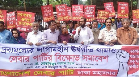 বাংলাদেশ লেবার পার্টির ঢাকা মহানগরের সভাপতি এস এম ইউসূফ আলীর সভাপতিত্বে বিক্ষোভ সমাবেশে আরও উপস্থিত ছিলেন বাংলাদেশ লেবার পার্টির ভাইস চেয়ারম্যান অ্যাডভোকেট আমিনুল ইসলাম, রামকৃষ্ণ সাহা, ভারপ্রাপ্ত মহাসচিব খন্দকার মিরাজুল ইসলাম, যুগ্ম মহাসচিব নুরুল ইসলাম সিয়াম, আবদুর রহমান খোকন, মুফতি তরিকুল ইসলাম সাদী প্রমুখ।