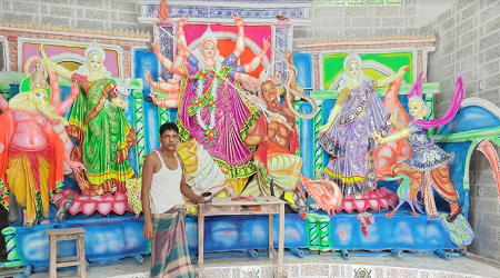 সরেজমিন ঘুরে জানা গেছে, উপজেলার ১১টি ইউনিয়ন ও পৌর শহরের বিভিন্ন স্থানে স্থায়ী ও অস্থায়ী এসব সার্বজনীন পূজা মন্ডপ তৈরি করে (প্রতিমা তৈরী) পূজার প্রস্তুতি চলছে। প্রতিমা তৈরিতে ভাস্কারদের কল্পনায় দেবী দুর্গার অনিন্দ্য সুন্দর রূপ দিতে সকাল থেকে গভীর রাত পর্যন্ত চলছে রং তুলির কাজ। বেশকয়টি মন্ডপে চলছে ভাস্কারদের শেষ তুলির আচড় দিয়ে প্রতিমা সাজসজ্জার কাজ। ভাস্কারদের নিখুঁত হাতের ছোঁয়ায় কৃত্রিম জীবন পাবেন দেবী দুর্গা, শিব, লক্ষ্মী, সরস্বতী, কার্তিক, গণেশ, অসুরসহ অন্যান্য প্রতিমা। এছাড়া কোনো কোনো প্রতিমায় আবার পরানো হচ্ছে শাড়ি, হাতের বালাসহ অন্যান্য গয়না।