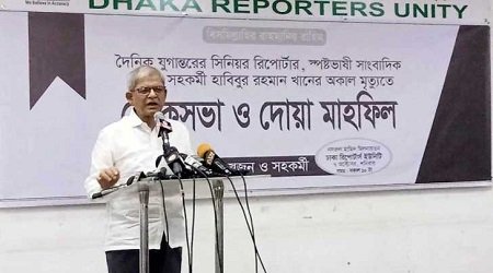 বিএনপির মহাসচিব ভারাক্রান্ত কণ্ঠে বলেন, হাবিবের স্মৃতিসভায় এসে কথা বলতে হবে—এটি কখনও ভাবিনি। অল্প সময়েই তার বন্ধুসূলভ ব্যাবহার আমাকে বিমোহিত করেছে। সাংবাদিকতার সঙ্গে দলীয় রাজনীতিকে মেলাতেন না তিনি। পেশাগত চেতনায় আত্মবিশ্বাসী থেকে সত্য প্রকাশে দ্বিধা করতেন না। সাংবাদিকতা চ্যালেঞ্জের মুখে মন্তব্য করে মির্জা ফখরুল বলেন, আজকে সাংবাদিকতা সবচেয়ে বড় চ্যালেঞ্জের একটি পেশা। সেই জায়গায় হাবিবুর রহমান খান আত্মবিশ্বাসের জায়গায় লড়াই করে গেছেন।