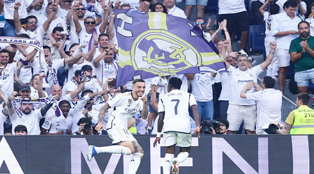 সান্তিয়াগো বার্নাব্যুতে নবম মিনিটেই রিয়ালকে এগিয়ে নেন বেলিংহাম। বিল্ডাপ ফুটবলে আক্রমণে যায় রিয়াল। লুকা মডরিচের বাড়ানো বল পান কার্ভাহাল। এই রাইট ব্যাকের পাস পেয়ে অনায়াসে জাল খুঁজে নেন বেলিংহাম। প্রথমার্ধে অবশ্য আর গোল করতে পারেনি রিয়াল।