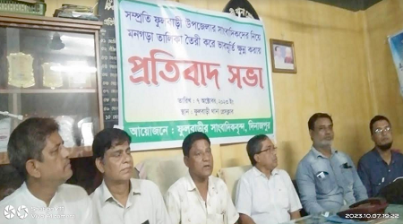 এরই প্রতিবাদে ফুলবাড়ী থানা প্রেসক্লাব কক্ষে থানা প্রেসক্লাবের সভাপতি সিনিয়র সাংবাদিক আফজাল হোসেনের সভাপতিত্বে বক্তব্য রাখেন, ফুলবাড়ী প্রেসক্লাবের প্রতিষ্ঠাতা সহ-সাধারণ সম্পাদক ফুলবাড়ী অনলাইন প্রেস ক্লাবের উপদেষ্টা কৈলাস প্রসাদ গুপ্ত, সিটি প্রেস ক্লাবের সভাপতি ও সাপ্তাহিক ফুলবাড়ী বার্তা’র প্রকাশক সম্পাদক তাজমিলুর রহমান নয়ন, ফুলবাড়ী অনলাইন প্রেসক্লাবের সভাপতি, দৈনিক ভোরের পাতা ও বাংলাদেশ টুডে প্রতিনিধি লিমন হায়দার,দৈনিক যুগান্তর প্রতিনিধি ও রিপোর্টার্স ইউনিটির সহ-সভাপতি ইমাম রেজা, এশিয়ান টেলিভিশন ফুলবাড়ী প্রতিনিধি কবীর সরকার,ফুলবাড়ী থানা
