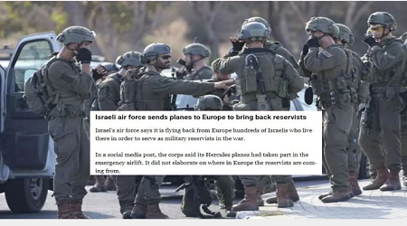 ইসরায়েলি বিমান বাহিনী ওই পোস্টে জানায়, তাদের হারকিউলিস প্লেনগুলো ইউরোপ থেকে জরুরি ভিত্তিতে কয়েকশ’ রিজার্ভ সেনা নিয়ে দেশে পৌঁছেছে।