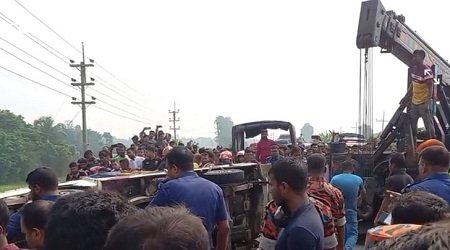 দুর্ঘটনার কারণে ঢাকা-আরিচা মহাসড়কে দুই ঘণ্টা যান চলাচল বন্ধ থাকে। রাস্তার উভয় পাশে যানবাহনের লম্বা লাইন পড়ে যায়। মানিকগঞ্জ সদর থানার ওসি আব্দুর রউফ সরকার দুর্ঘটনার সত্যতা নিশ্চিত করেছেন। নিহতরা হলেন— লেগুনাচালক আব্দুল মোতালেবের ছেলে জাহিদ হোসেন (৩৪), আয়শাআবেদ ফাউন্ডেশনের কর্মী স্থানীয় বাগজান গ্রামের আব্দুস সালামের স্ত্রী হেনা আক্তার (৫০), একই গ্রামের সনসুর আলীর স্ত্রী মালেকা বেগম (৫৫) ও মানিকগঞ্জ শহরের মিষ্টির দোকানের কারিগর সদর উপজেলার দিঘী ইউনিয়নের মৃত পরশ চন্দ্র মহাদেব চন্দ্র মদক (৫২)।