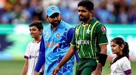 ভারত-পাকিস্তান লড়াইয়ের দিকে তাকিয়ে থাকে ক্রিকেটবিশ্ব। দুই দলই নিজেদের প্রথম দুইটি ম্যাচ জিতে নিয়েছে। তাই লড়াই যে সমানে সমানে হবে, সে বিষয়ে সন্দেহ নেই সমর্থকদের। তবে ভারতে খেলতে আসার আগে পাক ক্রিকেটারদের ভিসা পাওয়া নিয়ে সমস্যা হয়। এখন পাক সমর্থকদের খেলা দেখতে আসা নিয়ে সমস্যা চলছে। তবে এই সব বিষয়ে রোহিত মাথা গলাতে নারাজ। তার চোখ শুধু ম্যাচের দিকেই।