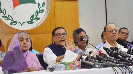 শুক্রবার বিকালে শান্তি ও উন্নয়ন সমাবেশের আগের দিন রাজধানীর বঙ্গবন্ধু এভিনিউয়ে আওয়ামী লীগের কেন্দ্রীয় কার্যালয়ে আয়োজিত এক সংবাদ সম্মেলনে তিনি এসব কথা বলেন।