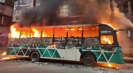 ডেস্ক নিউজ : রাজধানীর কাকরাইল মোড়ে একটি বাসে আগুন দিয়েছে দুর্বৃত্তরা। শনিবার (২৮ অক্টোবর) বিকেলে ৫টার দিকে কাকরাইলে ইসলামী ব্যাংক হাসপাতালের সামনে দাঁড়িয়ে থাকা বাসটিতে আগুন দেওয়া হয়। বিকেল সাড়ে ৫টার দিকে ঘটনাস্থলে গিয়ে দাউ দাউ করে বাসটি আগুনে জ্বলতে দেখা যায়। ঘটনাস্থলের কাছেই পুলিশ সদস্যদের দেখা যায়। কারা বাসে আগুন লাগিয়েছে জানতে চাইলে পুলিশের রমনা থানার ওসি আবুল হাসান বলেন, দুর্বৃত্তরা বাসটিতে আগুন দিয়ে পালিয়েছে।
