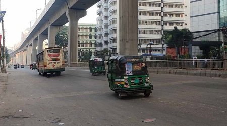 ঢাকার কাছে গাজীপুরে ঢাকা-টাঙ্গাইল ও ঢাকা-ময়মনসিংহ মহাসড়কে অন্যদিনের তুলনায় কম হলেও সকাল থেকেই গণপরিবহন চলাচল করতে দেখা গেছে।