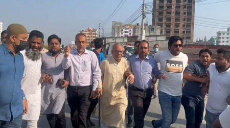 হরতালের সমর্থনে আজ রোববার সকালে ঢাকা-নারায়ণগঞ্জ লিংক রোডের ভুইগড় থেকে সাইনবোর্ড পর্যন্ত বিক্ষোভ মিছিলে নেতৃত্ব দেন বিএনপির সিনিয়র যুগ্ম মহাসচিব রুহুল কবির রিজভী।