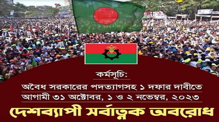 শহিদ আহমেদ খান সাবের,সিলেট প্রতিনিধি : বিএনপি ও সমমনা দলগুলো সারাদেশে তিন দিনের সর্বাত্মক অবরোধ কর্মসূচি ঘোষণা করেছে। আগামী মঙ্গলবার থেকে বৃহস্পতিবার সড়ক, নৌ ও রেলপথে এই অবরোধ কর্মসূচি পালন করা হবে। দেশের গণতন্ত্র, বাকস্বাধীনতা ও ভোটাধিকার প্রতিষ্ঠা এবং ঢাকায় বিএনপির মহাসমাবেশে হামলা, দলীয় নেতাকর্মীদের হত্যা, বিএনপি মহাসচিব মির্জা ফখরুল ইসলাম আলমগীরসহ আন্দোলনরত বিভিন্ন দলের সহস্রাধিক নেতাকর্মী গ্রেপ্তার, বাড়ি বাড়ি তল্লাশি, হয়রানি ও নির্যাতনের প্রতিবাদে এবং এক দফা দাবি আদায়ের লক্ষ্যে নতুন এই কর্মসূচি ঘোষণা করা হয়।