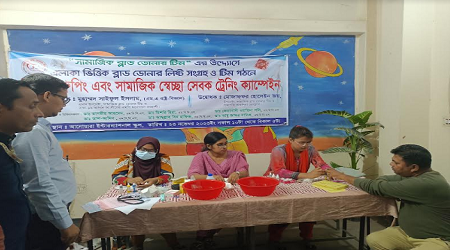 আশুলিয়া (ঢাকা) প্রতিনিধি : “রক্ত খুঁজতে হয়রানি নয়, নিজ মহল্লায় রক্ত পাই” এই প্রতিপাদ্য স্লোগানকে সামনে রেখে সামাজিক ব্লাড ডোনার টিম নামে একটি স্বেচ্ছাসেবক সংগঠনের উদ্যোগে ফ্রি-ক্যাম্পেইন অনুষ্ঠিত হয়েছে। বৃহস্পতিবার সকাল থেকে বিকাল পর্যন্ত আশুলিয়ার দক্ষিণ গাজীরচট মৌসুমী মার্কেট এলাকায় আনোয়ারা ইন্টারন্যাশনাল স্কুলে এই ক্যাম্পেইন চলে। এসময় ব্লাড ডোনার লিস্ট তৈরির পাশাপাশি ফ্রি চিকিৎসা সেবা প্রদান করা হয়। সেইসাথে ৮৫ জন স্বেচ্ছাসেবী সদস্যদের ব্লাড গ্রুপিং করানোসহ প্রাথমিক চিকিৎসার ট্রেনিং প্রদান করা হয়।
