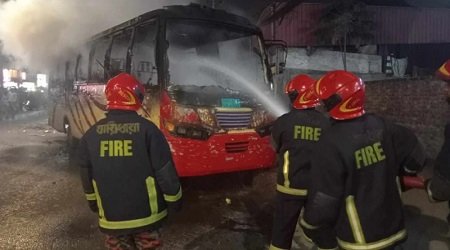 এর আগে আজ বিকেলে রাজধানীর মানিকনগরে একুশে এক্সপ্রেস পরিবহনের তিনটি বাসে আগুন দেওয়া ঘটনা ঘটে।