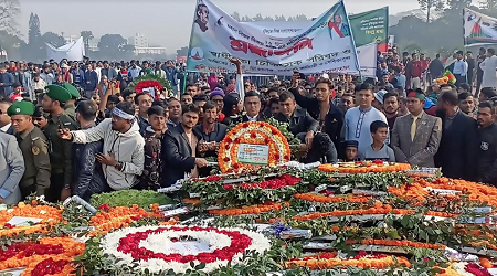 জাতীয় স্মৃতিসৌধে বিজয়ের ৫২ বছর উদযাপন করতে আসা হাজারও মানুষের মধ্যে ছিল বাঁধভাঙা উল্লাস। তবে এর মধ্যেও ৩০ লাখ শহীদের প্রতি বিনম্র শ্রদ্ধা আর ভালোবাসা জানাতে ভোলেননি তারা। শিশু থেকে আবালবৃদ্ধ বনিতা অধিকাংশের হাতে লাল-সবুজের পতাকা আর বিভিন্ন স্লোগানে মুখরিত হয়ে উঠেছে জাতীয় স্মৃতিসৌধ এলাকা।