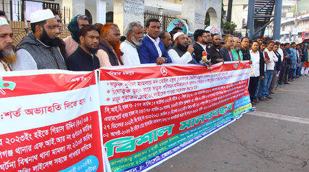 শহিদ আহমেদ খান সাবের,সিলেট প্রতিনিধি : শ্রমিকদের উপর থেকে মিথ্যা মামলা প্রত্যাহার ও গ্রেফতারকৃতদের মুক্তি এবং বিভিন্ন দাবি আদায়ের লক্ষ্যে বাংলাদেশ সড়ক পরিবহণ শ্রমিক ফেডারেশন এর অন্তর্ভূক্ত সিলেট জেলা বাস, মিনিবাস, কোচ, মাইক্রোবাস শ্রমিক ইউনিয়ন রেজি নং- বি-১৪১৮ এর উদ্যোগে বিশাল মানববন্ধন অনুষ্ঠিত হয়েছে। রবিবার (২১ জানুয়ারি) বিকেল ৩টায় নগরীর কোর্ট পয়েন্টে এই বিশাল মানববন্ধনের আয়োজন করা হয়।