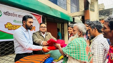 রেডিসন ডিজিটাল টেকনোলজিস লিমিটেড-এর চেয়ারম্যান ও পরিবর্তন বাংলাদেশ-এর সভাপতি দেলোয়ার হোসেন ফারুক শীতবস্ত্র বিতরণ কর্মসূচির উদ্বোধন করেন।