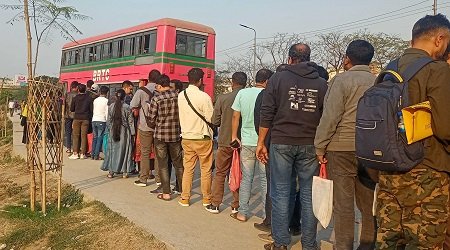 ডেস্ক নিউজ : শুক্রবার (৯ ফেব্রুয়ারি) সরেজমিনে কুড়িল বিশ্বরোড বিআরটিসি শাটল বাস কাউন্টার ঘুরে দেখা যায়, বাণিজ্য মেলা উপলক্ষ্যে অস্থায়ী কাউন্টার বসানো হয়েছে। শুরুতে কম থাকলেও, ভিড় বাড়তে থাকায় গত সপ্তাহ থেকে কাউন্টারে লোকবল বৃদ্ধি করা হয়েছে।
